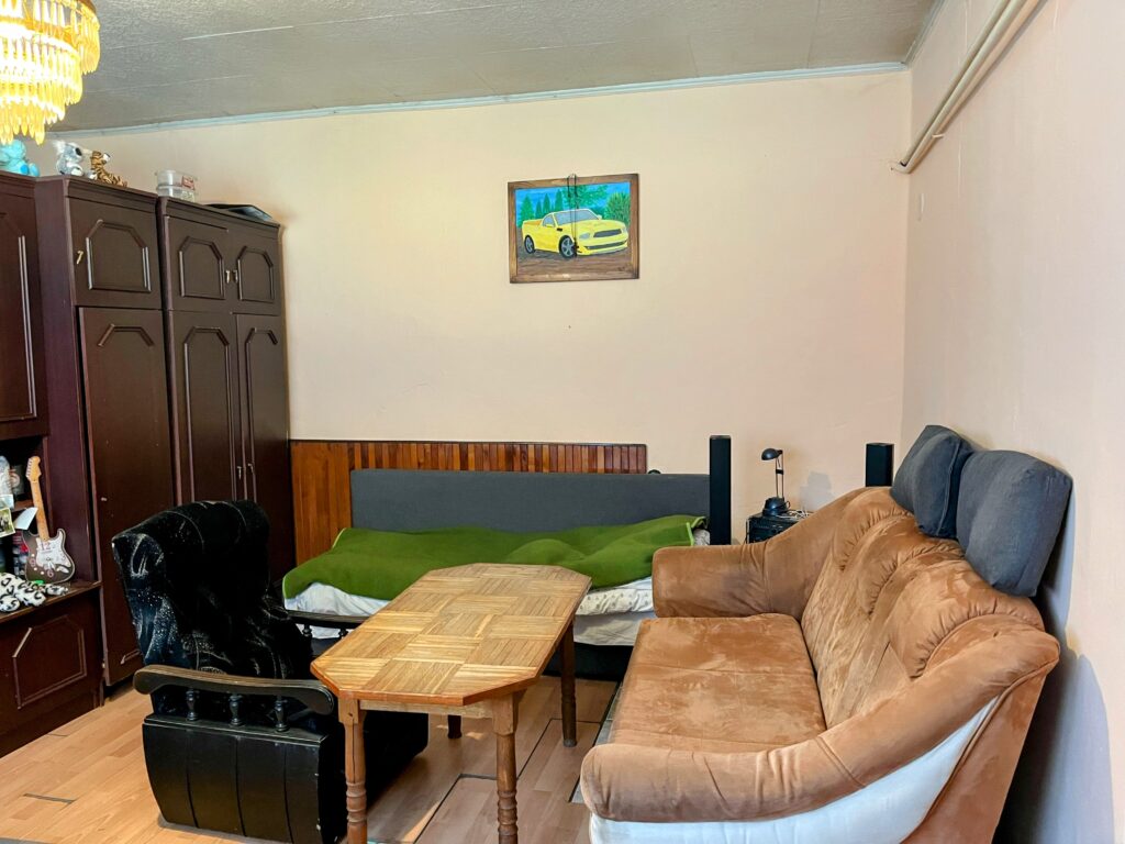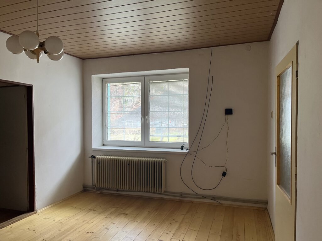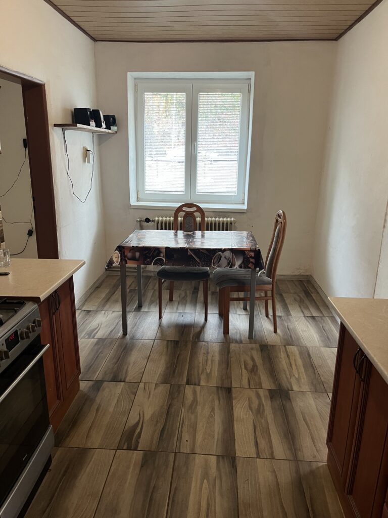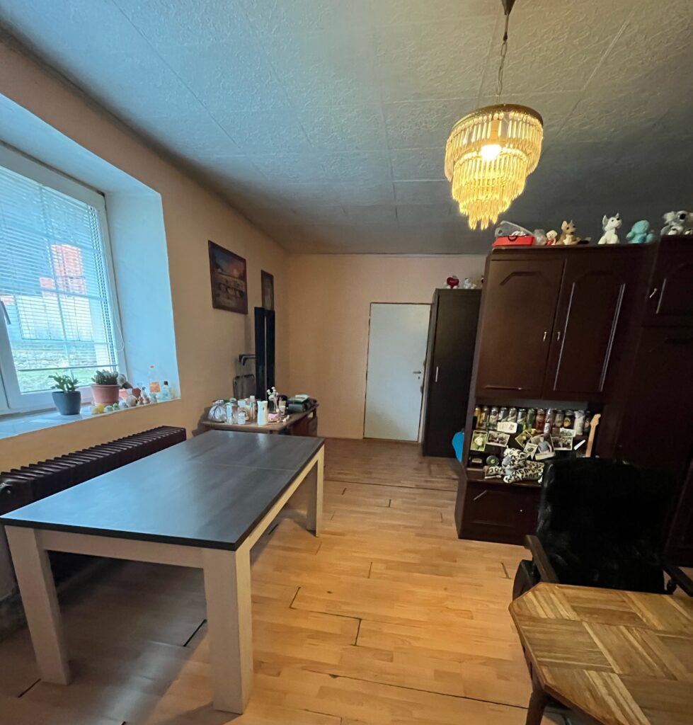 Kamenná stavba o rozmeroch 8,5 m x 18,1 m má dva samostatné vstupy. Z hornej strany vstup do chodby, prechod do kuchyne, z nej do kúpeľne a skladu – špajzy. Z kuchyne je prechod do priestrannej izby s novou dlážkovinou. Veľká nadrozmerná izba, kde sa dajú vytvoriť dve samostatné izby, kuchyňa, špajza, kotolňa, chodba a kúpeľňa.